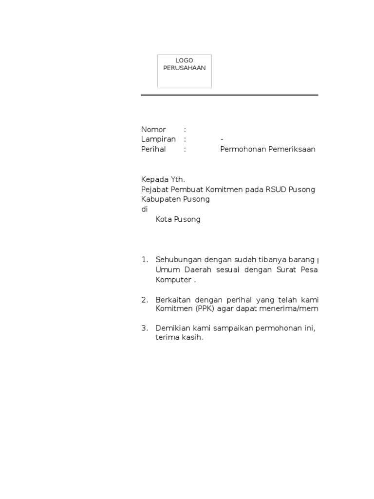 Contoh Surat Permohonan Pemeriksaan Barang Pdf